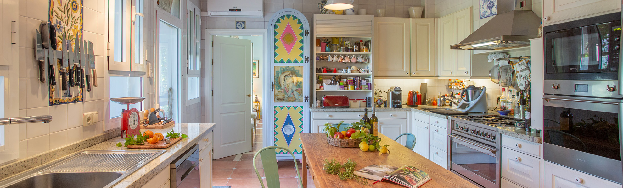 When it comes to the kitchen and cooking this part of web page could be endless. Food has always been important at El Duende and the kitchen has been designed to really cook in. We also have an out door kitchen to grill and make paellas or to cook soups and stews that take hours, so as not to fill the house with cooking smells. We get most of our vegetables from the garden under Andrey´s regime, and for vegetarians it is a paradise. In Summer there is an endless supply of tomatoes of all kinds and colours plus all the Summer vegetables.